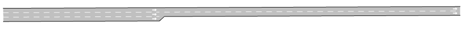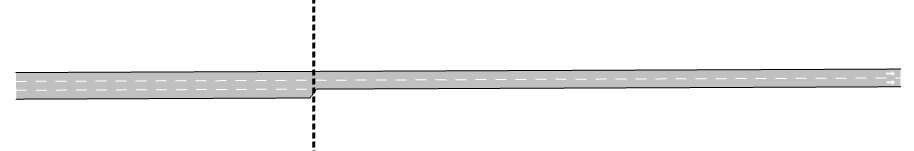 To model on-ramps, the mesoscopic simulation cuts the section with the on-ramp into different segments. For example, the following road section has two internal segments; the first segment has three lanes and a length of 100 meters and the second segment has two lanes and is 300 meters long.