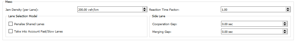 There are two parameters that you can use to calibrate the behavior of the mesoscopic on-ramp model: Cooperation Gap and Merging Gap.