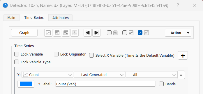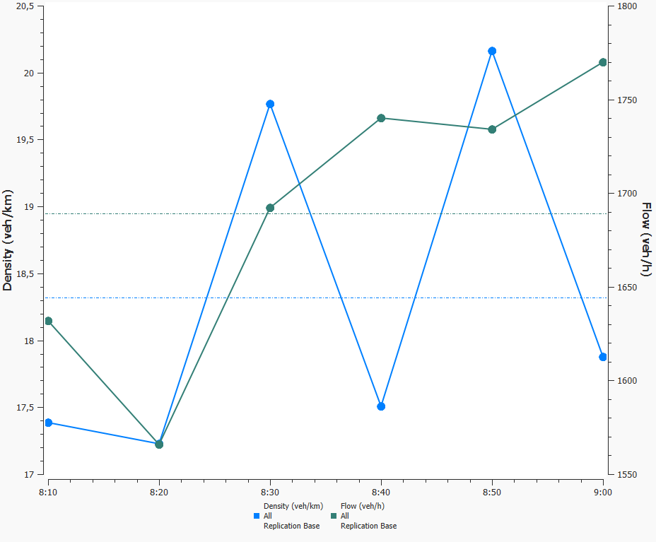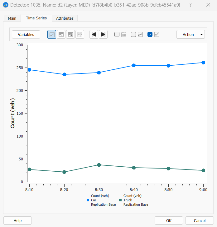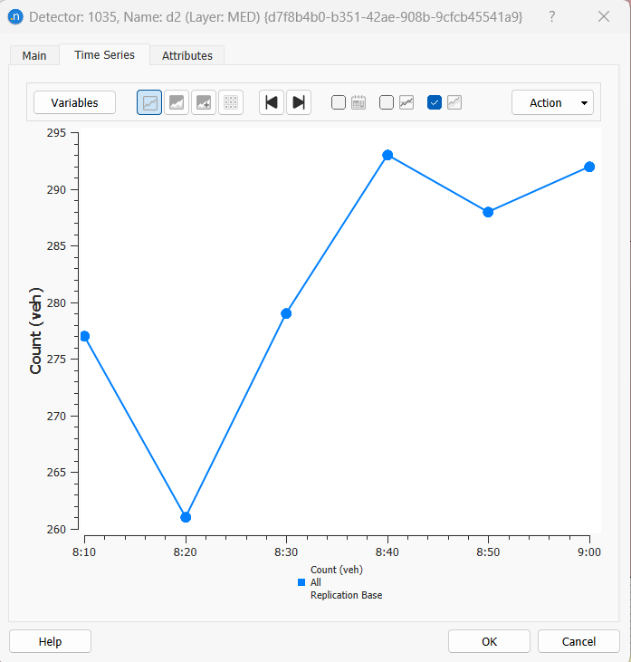 During (microsimulations) and after a simulation, we can view the data collected for each of the objects in the model (sections, nodes, detectors, etc.). In this exercise we will view time series for a detector and a section.