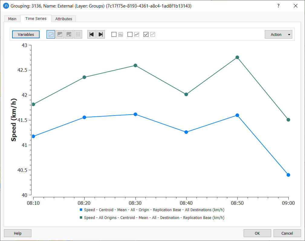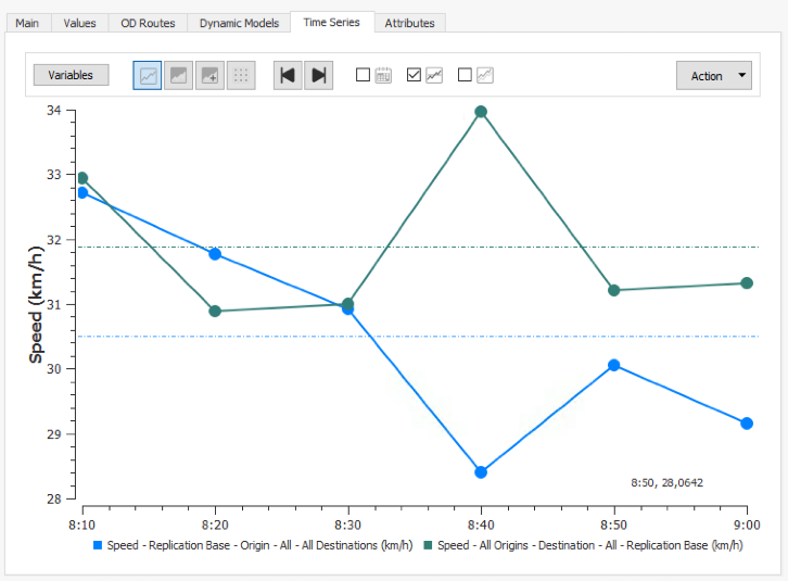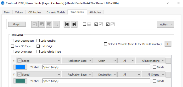 For the Y axis, select Speed, Replication Base, Origin, All, and B23 (the destination centroid).