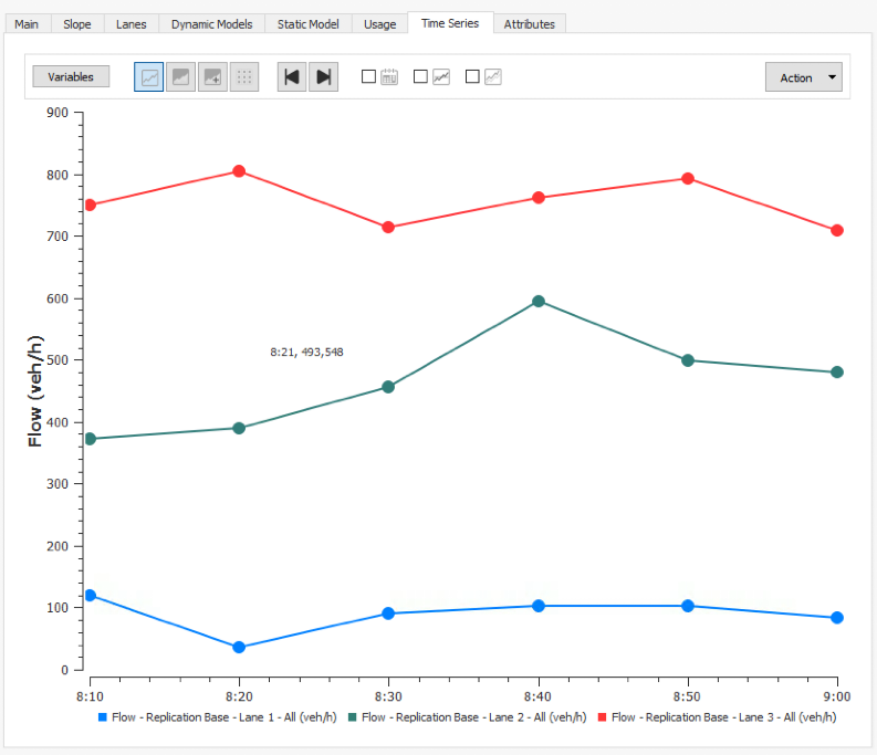 For each variable, select Flow and a lane (Lane 1, Lane 2, Lane 3).