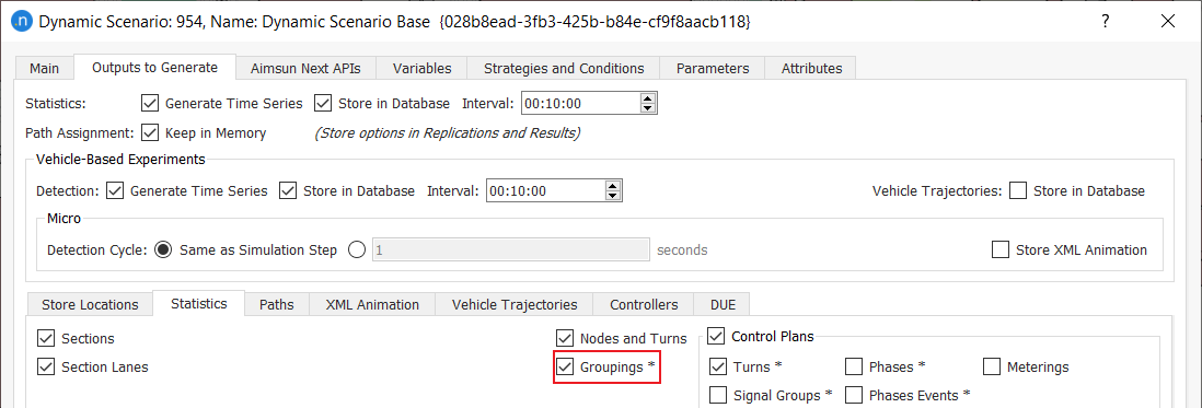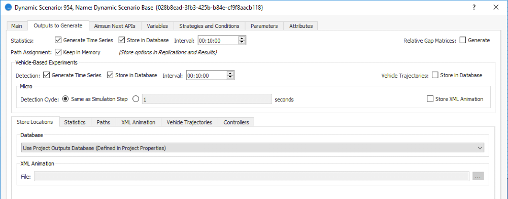 - Open the scenario Dynamic Scenario Base and click the Outputs to Generate tab. Review the parameters set here; note that Interval is 00:10:00.