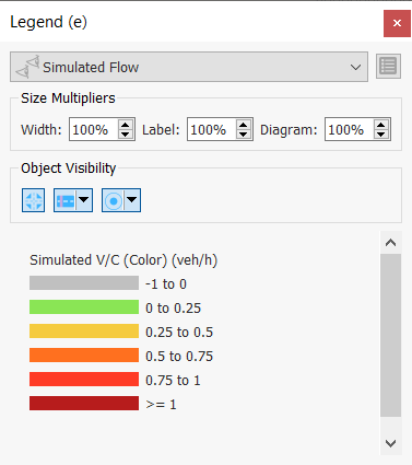 The network is updated with a visualization of the capacity in sections. The Legend window contains the color key that relates to the visuals.