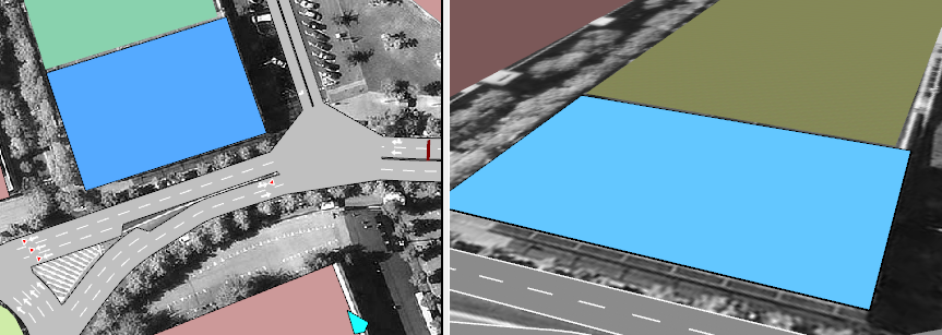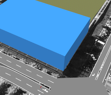 The screenshot below shows a 2D representation of a building in the network that has no polygon yet. It is just a background image. We will change this building into a 3D object in the next exercise.