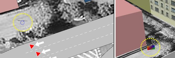 In the 2D view, click where you would like to create the 3D image (in our case, between the section and the building). You might need to zoom or pan the network view to find the right location.