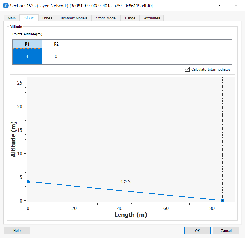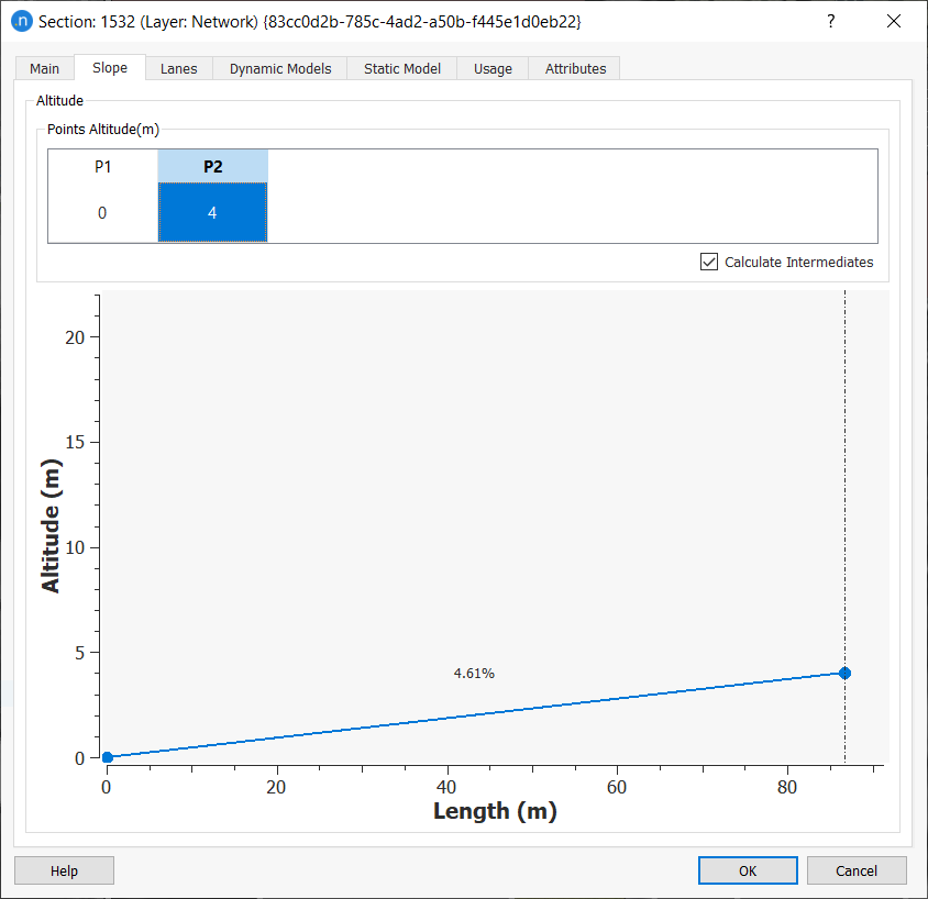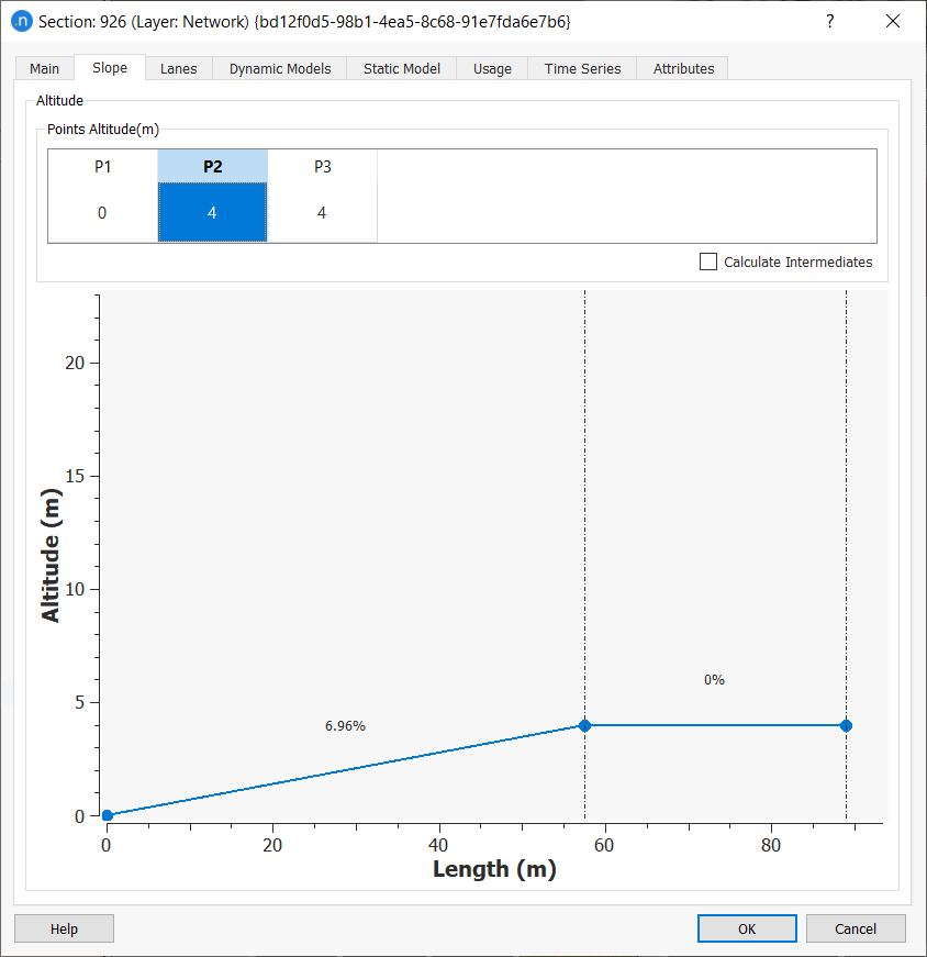 In the Altitude group box, click in the P2 cell and enter a value of 4 (meters). All intermediate points will be calculated automatically.