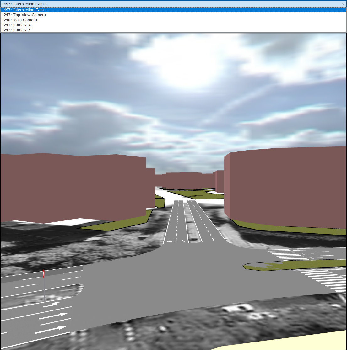 From the list of available cameras in the 3D view, select your new camera. If you don’t see the whole intersection, you can correct the position of the camera by moving and rotating it so that it faces the main junction as shown in the next screenshot.