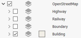 The screenshot below shows the effect of changing the polygons on the OpenStreetMap > Building layer into extruded polygons that have an average height but no further details to represent the buildings.
