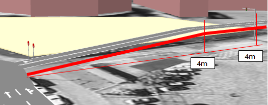 In our example, the Camp Nou car park has an altitude of 4 meters. The slope of the approach ramp section should climb from 0m to 4m, and the ramp descending from the car park should slope from 4m to 0m.