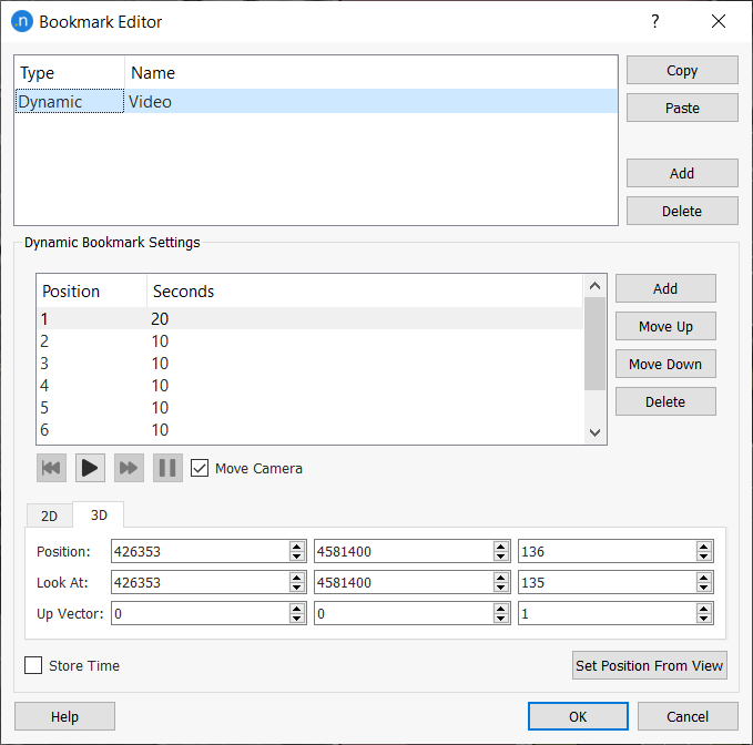 In the 3D view, zoom or pan to the second position in your route and, when you are happy with the location, click Add. This adds the second camera position to the dynamic bookmark (and therefore your route). Repeat this step for as many positions as you need to complete the whole camera route.