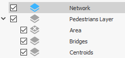 The goal of this exercise is to add layers in which we can organize the different graphical aspects of the pedestrian area. Such organization enables us to show those details we require but hide anything that is not needed in the simulation. We will start by adding three new layers to the Pedestrians Layer.