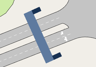 Draw the object pictured below across the two road sections near South OUT. You can resize, move, and rotate it as desired. At the moment it appears underneath the sections. We will fix this in the next step.