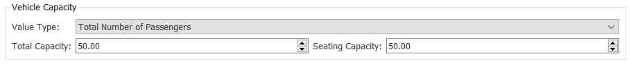 The maximum capacity of a bus is defined in the Vehicle Type dialog. Vehicle types can be found in the Project folder, within Vehicles.