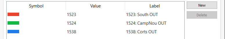 Add value ranges to represent the three pedestrian destinations/exits in the network and choose a color ramp based on your preference.