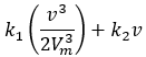 The following fuel-consumption equation for a cruising vehicle moving at speed \(v\), has been determined by Akcelic 1982. It contains three constants: \(k_1\), \(k_2\), and \(v_m\), which need to be determined empirically for each vehicle type.