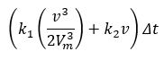| Accelerating with acceleration of \(a\) (m/s/s) and speed \(v\) (m/s) | (\(c_1\) + \(c_2av\)) Δ \(t\) |