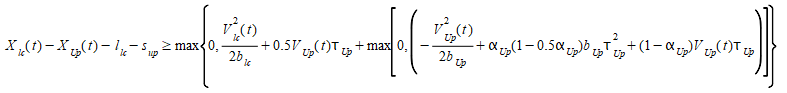 The minimum headway constraint is defined as: