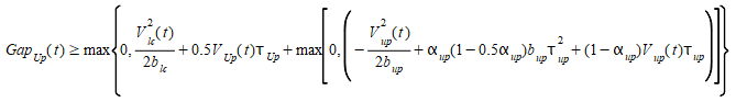 It consists of two components, acceleration and deceleration. The first represents the intention of a vehicle to achieve a certain desired speed, while the second reproduces the limitations imposed by the preceding vehicle when trying to drive at the desired speed. This model states that the maximum speed to which a vehicle (n) can accelerate during a time period (t, t+dt) is given by: