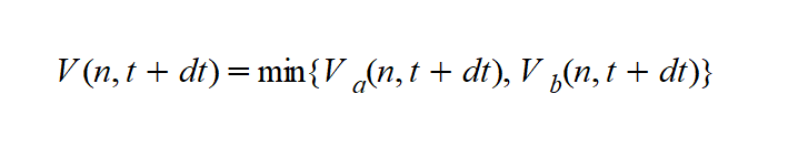 The speed for vehicle n during time interval \((t, t+dt)\) is then the minimum of these two speeds