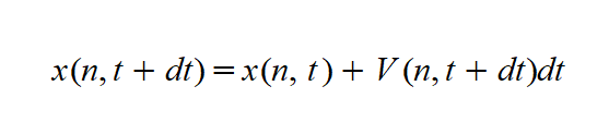 The position of vehicle n in the current lane is then updated using the integration of the speed. Acceleration and deceleration phases are integrated using different methods. The acceleration phase is integrated using the rectangle method corresponding to the following equation: