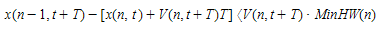 The model also includes the minimum headway between leader and follower as a restriction of the deceleration component. This constraint is applied before updating the position X(n,t+T).