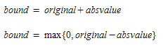 Absolute Value. The values of the specified matrix will be used as an absolute deviation with respect to the original matrix. The absolute value must be positive. This results in the following upper and lower bound: