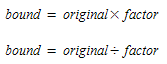 Factor. The values of the specified matrix will be used as a deviation factor with respect to the original matrix. A value of 0 means Frozen and the value of the deviation factor should be > 1. This results in the following upper and lower bound: