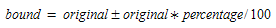 Percentage. The values of the specified matrix will be used as a deviation percentage with respect to the original matrix. This results in the following upper and lower bound: