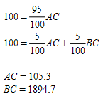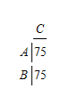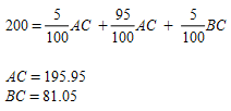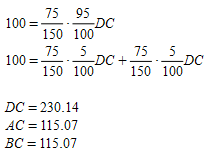 Centroid groupings aggregate a number of centroids into one aggregated centroid. This reduces the number of variables in the adjustment procedure and can prevent solutions that contain extreme values. In the following example, centroids A and B are grouped into one aggregated centroid called D. The system of equations now has just one variable, DC, and is solved with a least squares method: