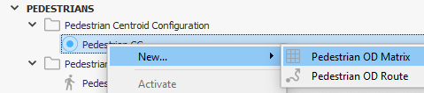 Right-click Pedestrian CC > New > Pedestrian OD Matrix.