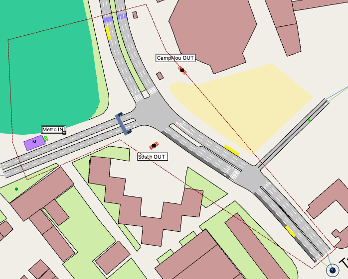 Rename the entrance Metro IN and rename the exits CampNou OUT and South OUT, as indicated in the screenshot above.