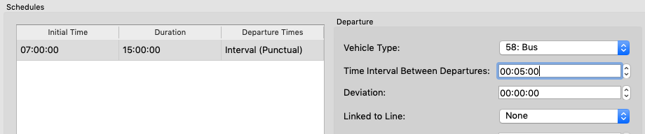 ii. Click on a schedule and lower the value for Time Interval Between Departures.