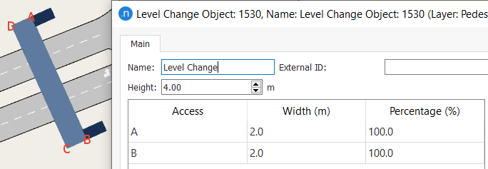 Set Height as 4.00 m and for both access points (A and B) set the Percentage as 100%. The reason this is 100% is because there is only one access point at each side of the bridge.