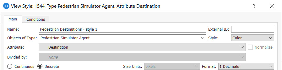In this concluding exercise, we will create a new view mode to highlight pedestrians based on their destinations. You might like to refer back to the view mode exercises in the tutorial Viewing Microsimulation Outputs.