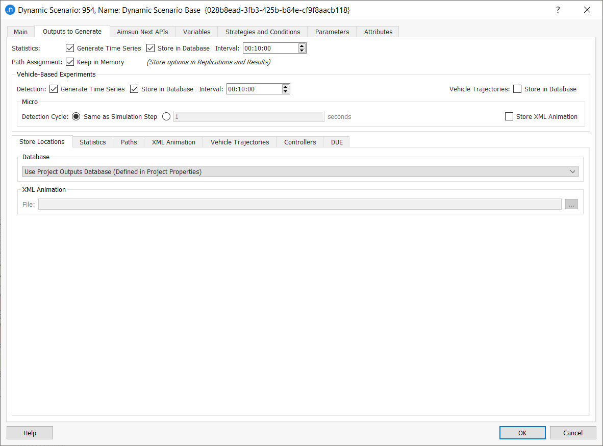 To retrieve outputs from an external database, the database file can be located in any directory but specified in the Scenario > Outputs To Generate > Store Location > Database. Find more info regarding databases in Aimsun Next in Database Description. See more in Retrieve Outputs