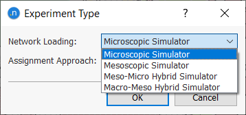 To add a new experiment, right-click on the scenario and select New Experiment. When adding a new experiment to a scenario, the first decisions to make involve network loading and assignment approach. Network loading describes the granular level of simulation you want to run, which can be one of the following: