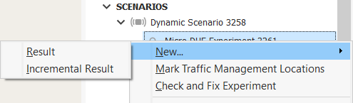 To add a result to an experiment, right-click on the experiment below the scenario and select New > Result:
