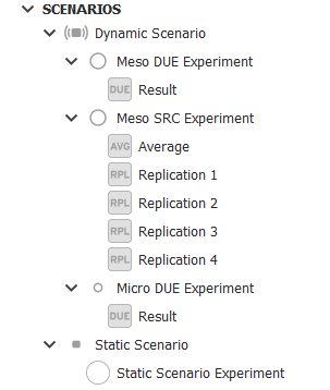 Some scenarios and experiments don't use simulations named "Result" or "Replication" but instead use experiments named directly after the scenario because there is no stochasticity in the models for which a random seed is needed.