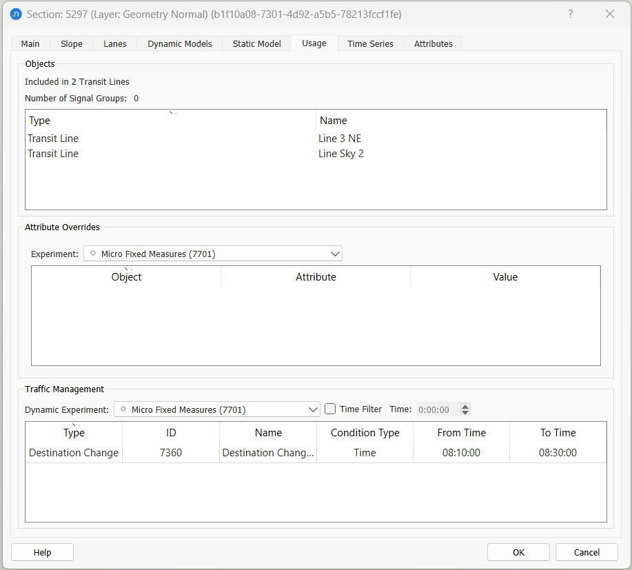 This tab displays the usage of this section in other objects such as transit lines, signal groups, or traffic management actions.