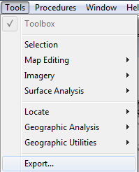 Next save the links as a shapefile. Go to the Tools : Export… menu: