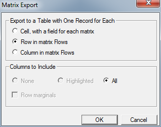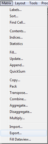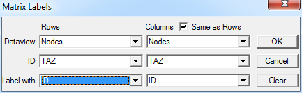 Open the TransCAD matrix file in the same model (without closing the network). The rows and columns must be labeled with the node IDS before the matrix is exported. This can be done with the Row and Columns Label tool