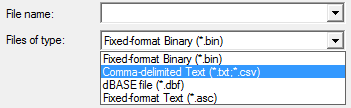 Finally select Comma-delimited Text or dBASE file as file type and export the file.