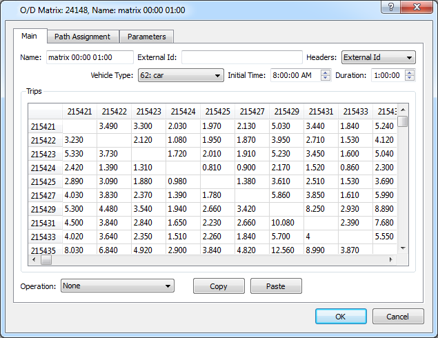 This procedure must be repeated for all the matrices exported from TransCAD.
